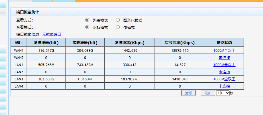 LAN1和lan 3 可能是由内部数据交换,所以看这个流量大于wan口的,