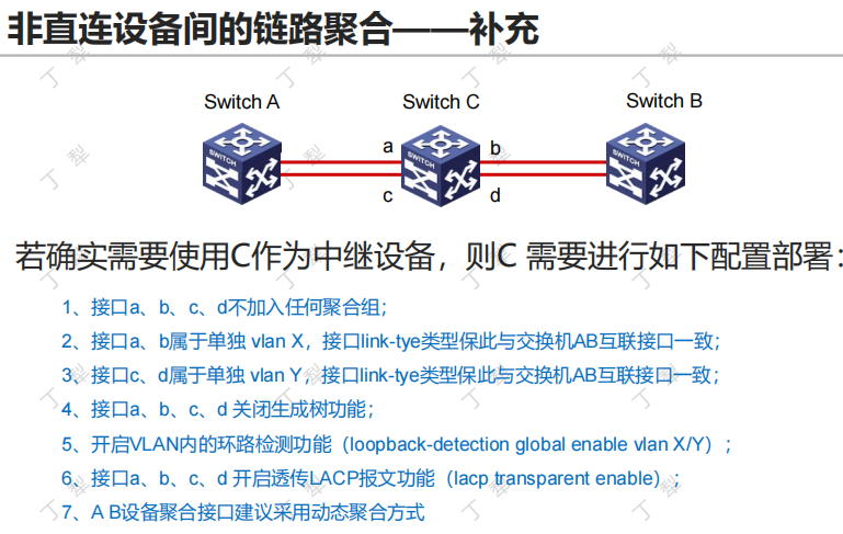 需要使用其他方案来规避实现 、跨交换机的链路聚合;