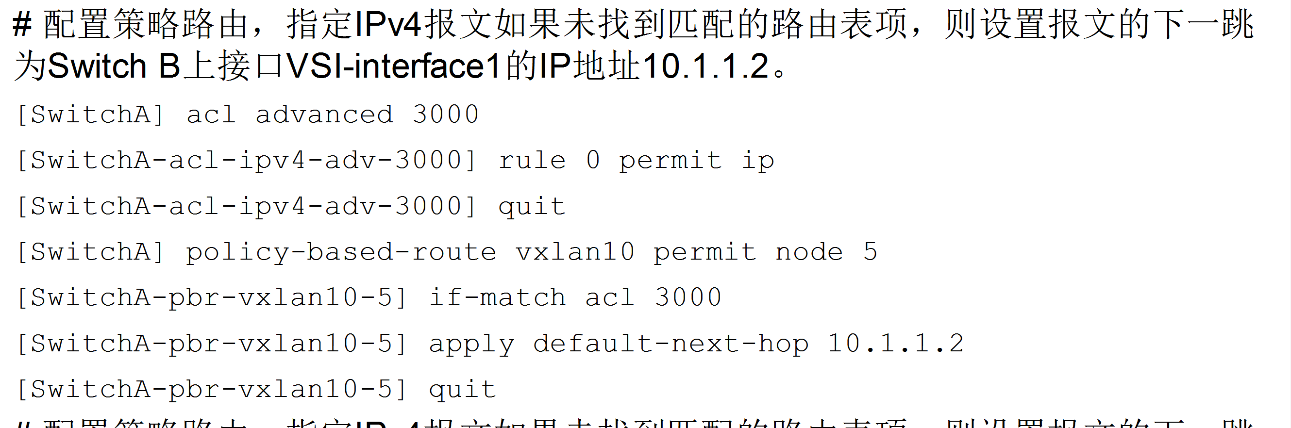 配置指导意思是SWE模拟外网,虚拟机从SWB的vsi接口出去访问外网。 这个PBR就按图中这样写,然后应用在VSI 接口下面。