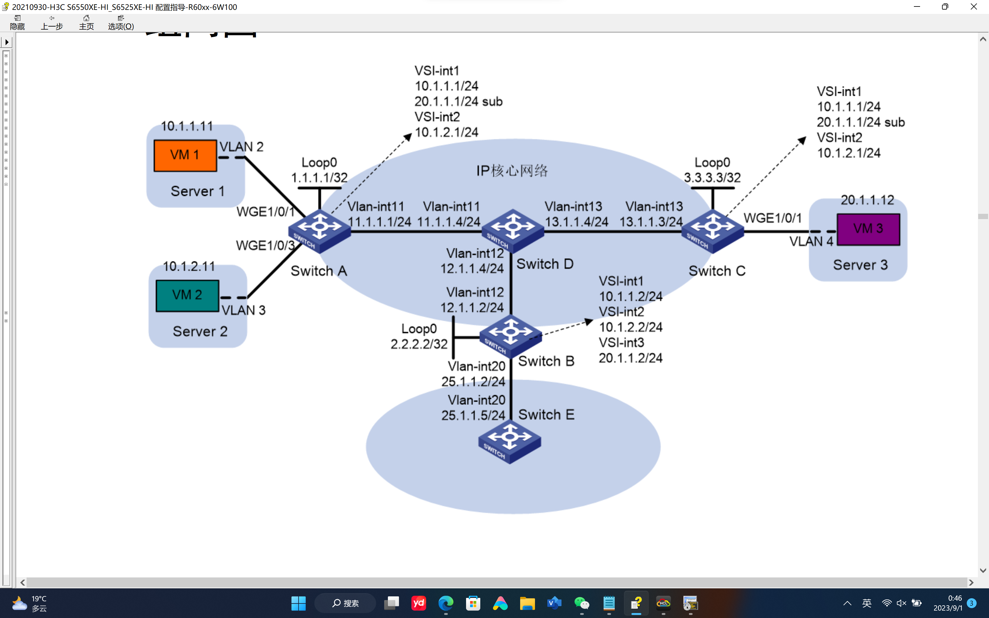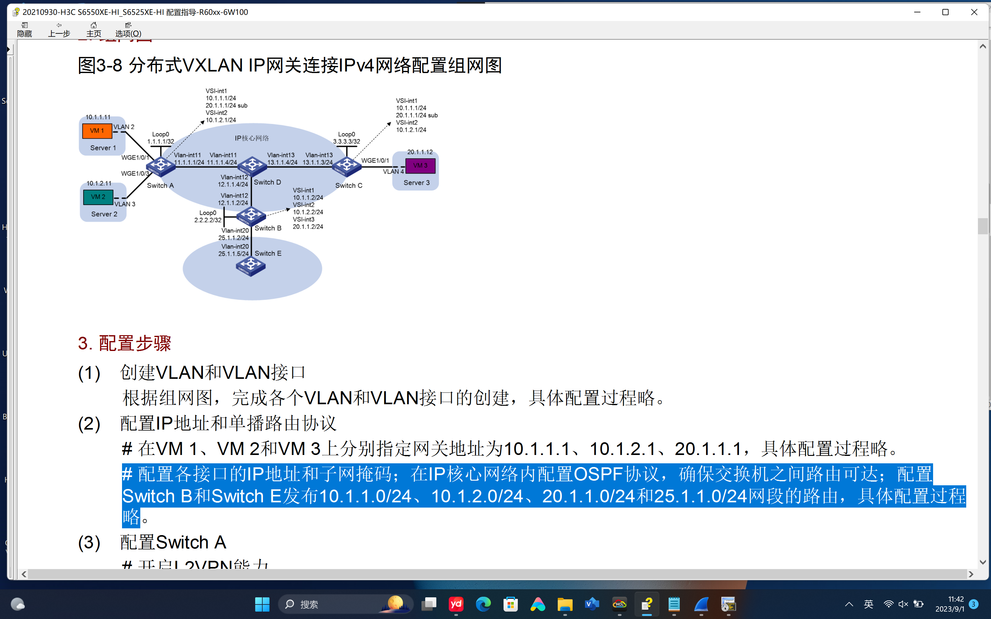 如图官网所给的配置手册中蓝色截图所示,我将所有交换机互联地址,loopback地址,以及所要求的SWB,SWE所说的网段均发布在OSPF中。这样模拟环境是否正确。(20210930-H3C S6550XE-HI_S6525XE-HI 配置指导-R60xx-6W100)