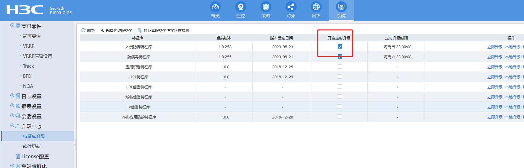 定时升级关闭就行了,安全策略里还引用着也能起到一定的防护作用