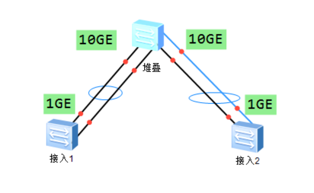 现场,两台接入交换机端口是1GE, 核心做的堆叠端口是10GE。 现在核心与下面接入交换机做链路聚合 放通所有vlan,通过dis int eth 3,dis eth 3,显示建立成功端口为up状态,而且接口被选中, 但是pc却上不了网。 之后把聚合口删除掉改成了普通口,直接改成trunk模式,放通VLAN,pc可以正常上网。这是什么问题,怎么才能聚合起来。 下满是我模拟的拓扑图。