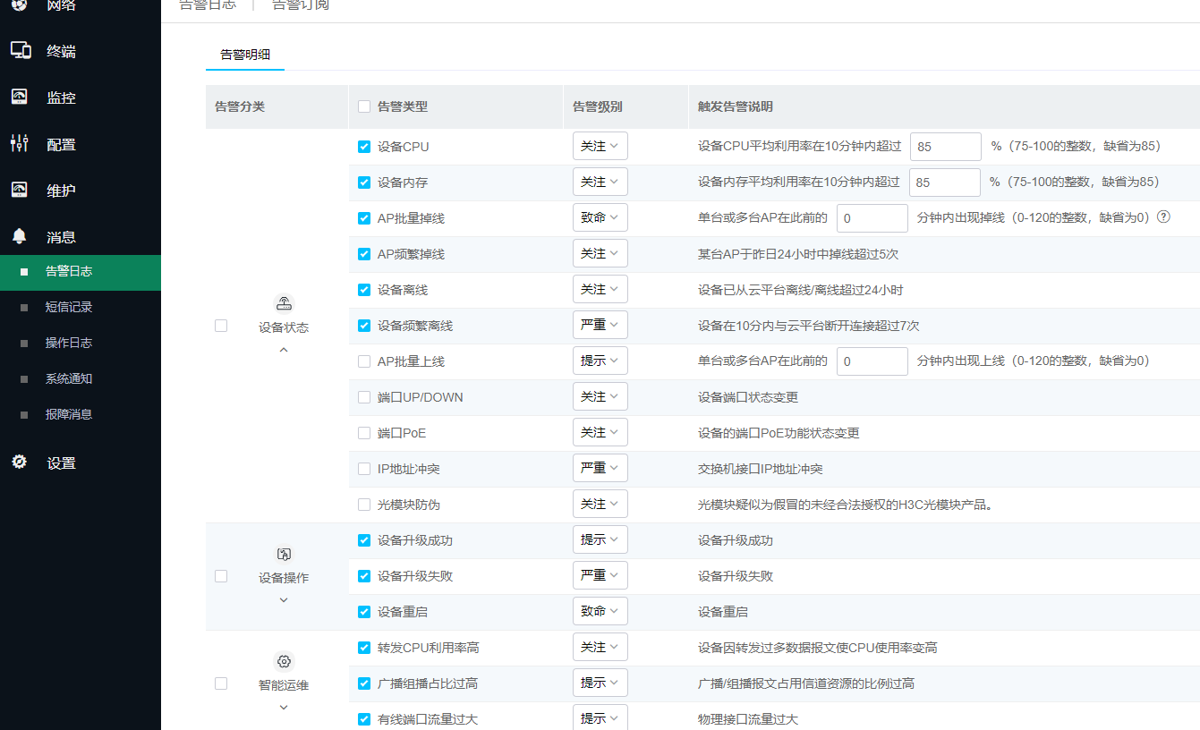 B.可以检查设备配置、网络状态,设备运行情况等多个项目 //可以查看网络状态,设备运行,检查日志的话可以用iservice.h3c.com检查