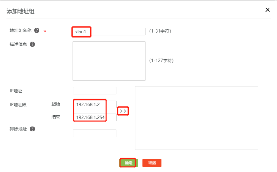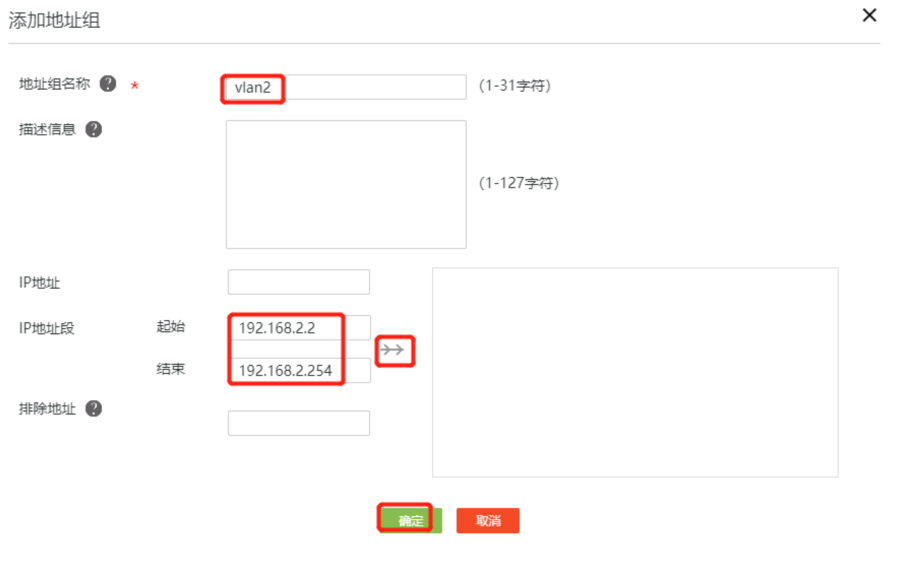 基本操作都是一样的,不过配置地址组的时候,不能把x.x.x.1的地址放入进去,和之前配置唯一不同的地方。