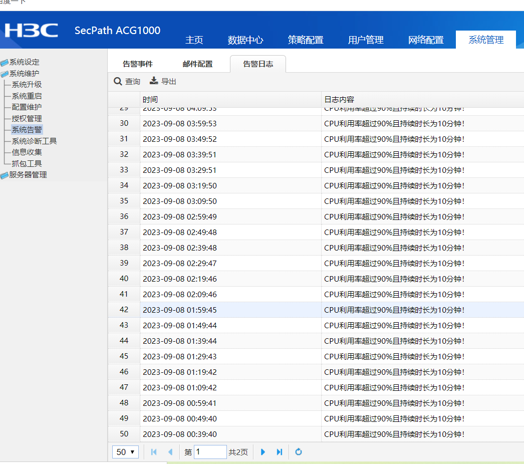 ACG晚上到早上cpu很高,但是流量和连接数很低,是什么原因?