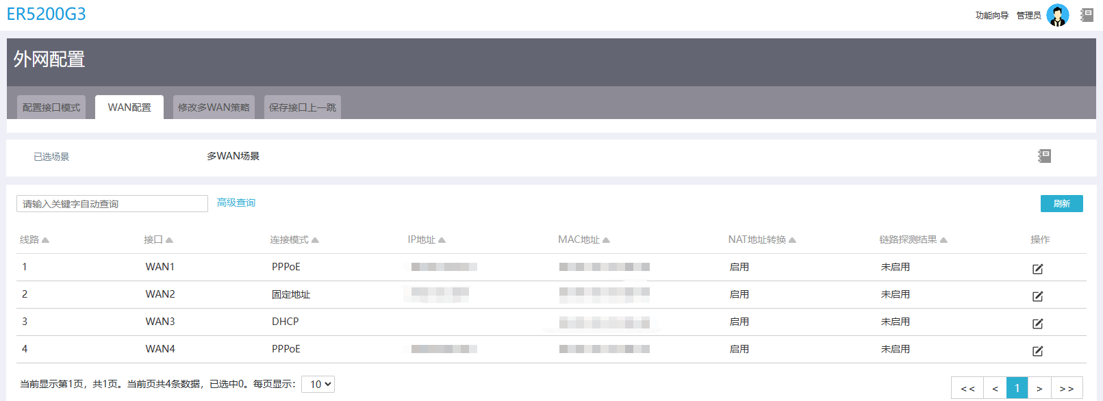 只有多WAN场景可以进行本页面的配置。