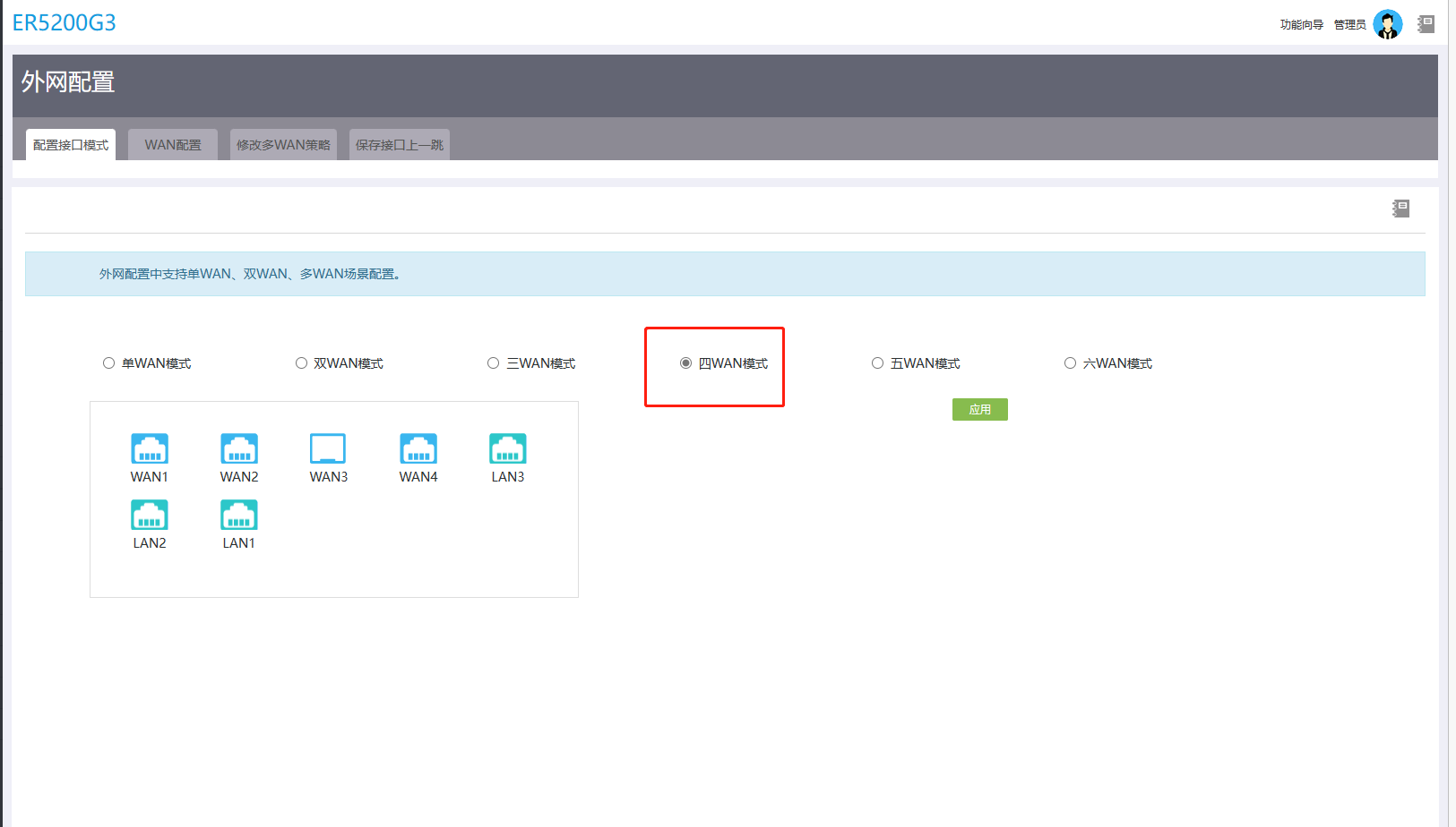 (4) 点击<应用>按钮,完成多WAN策略修改。