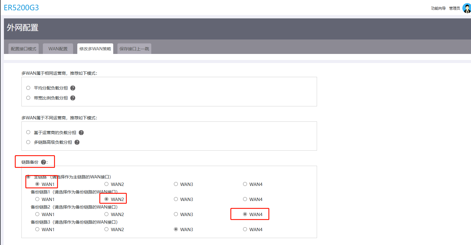 (3) 根据实际应用,对多WAN策略进行修改: