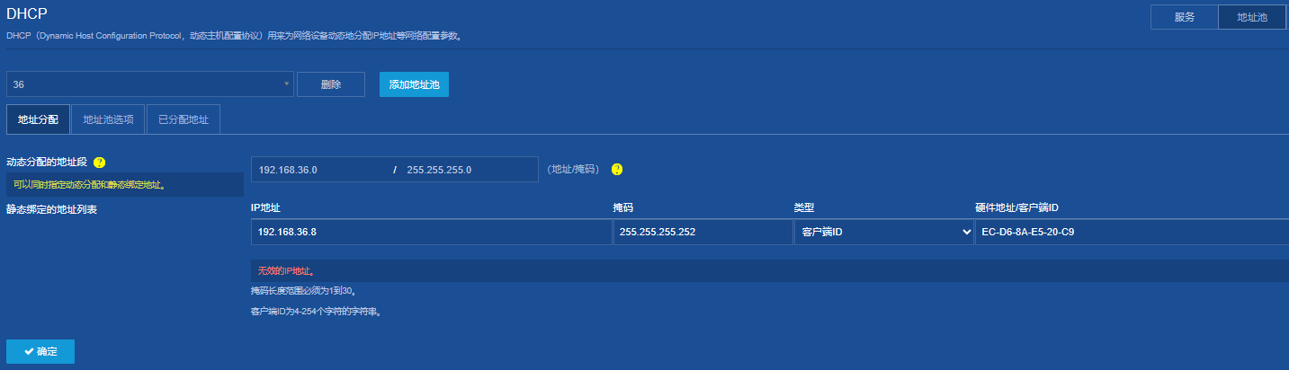 为什么会提示无效的IP地址 和那一大串是什么意思,我想绑定的是mac地址是选择以太网还是客户端ID