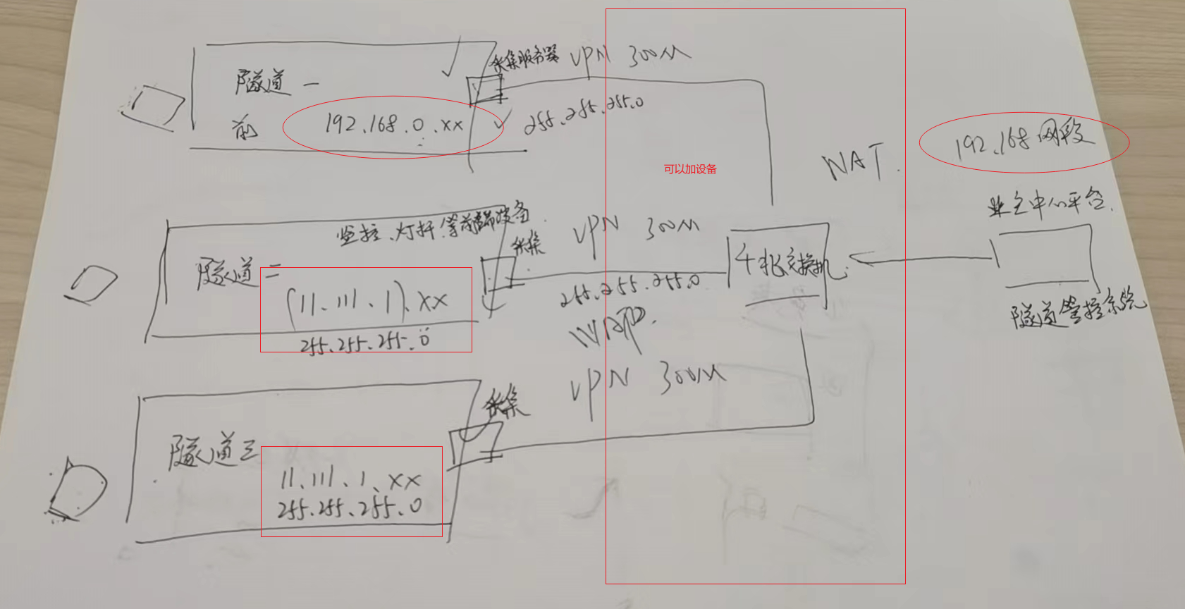 2、中间那块可以加设备比如路由器等,只要能使用NAT技术实现管控系统对三个业务的统一管理即可