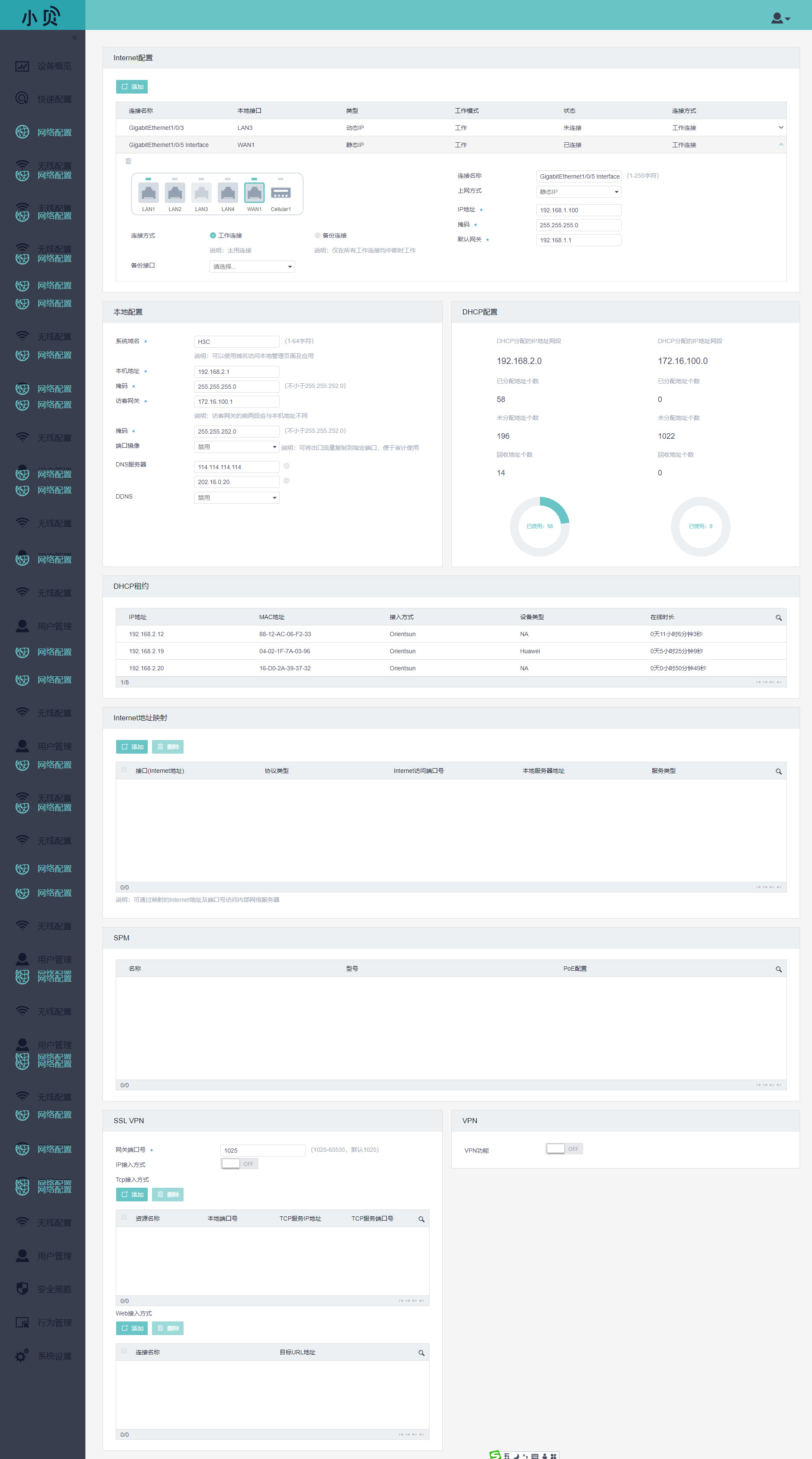 单击“系统”菜单页面左侧导航栏的“网络配置 > 服务 > DHCP/DNS”,