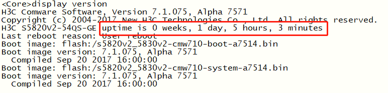 dis version可以查看设备自上次启动后到现在的运行的时间。