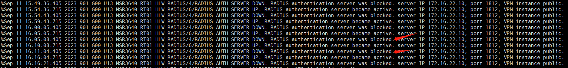 故障现象计费功能正常,认证功能端口为1812的端口无故blocked掉线,过五分钟后正常,请问这是什么问题导致的呢,日志报错和路由器报错在上面