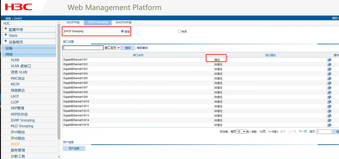 请教一下大神,MS4100V2配置dhcpsnooping,我配置G1口为信任口,其他口为非信任口,为什么上联线插在G2口,用户插其他口还能获取到G2口分配的IP?