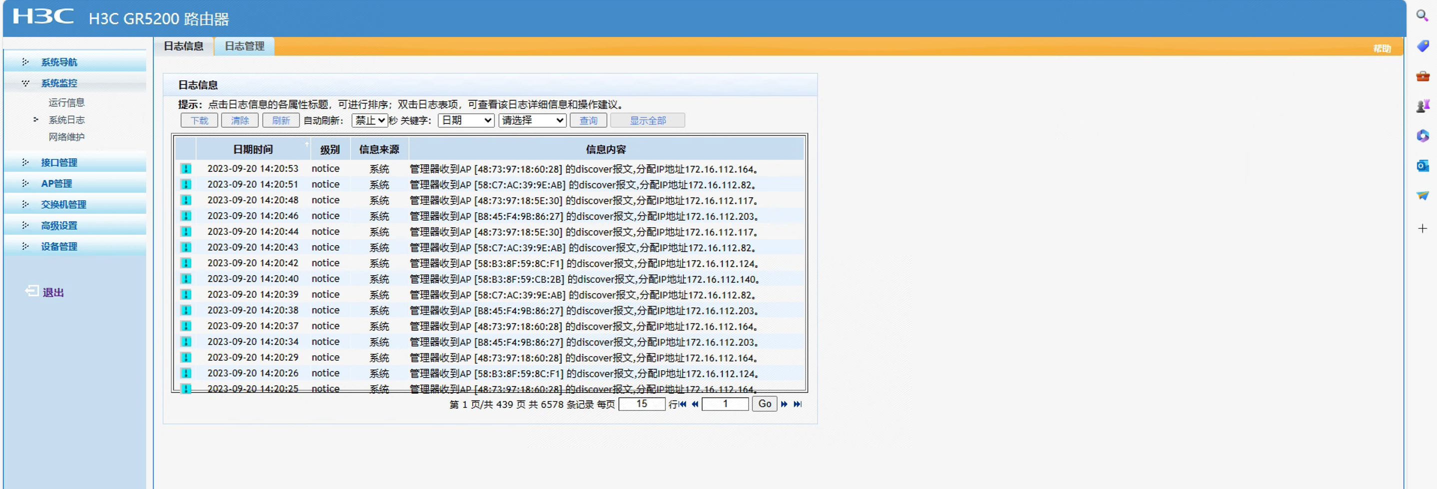 2、检查AP是否能拿到IP地址,如果不能,检查路由器的VLAN和DHCP配置。