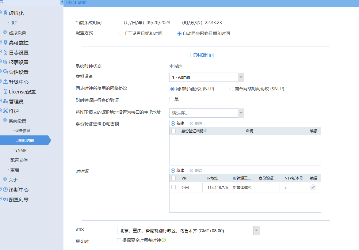 防火墙时间不同步,差了几分钟。所以通过web配置,配置完后,一直不同步,后台去ping服务器地址,ping不通。防火墙下联的PC是可以ping通ntp服务器地址的。该怎么配置呢
