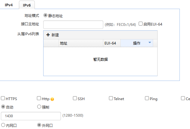 acg1050使用拨号上网,电信下发了ipv6地址,但是设备ipv6界面只有指定静态地址选项,不能够像ipv4一样自动获取地址,有大神知道咋回事儿吗?需要怎么操作才能自动获取ipv6地址,论坛有人升级到最新版系统也是一样的情况,所以更新系统是不行的了