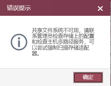 E0526版本cas集群下的一台cvk主机下 迁移虚拟机-暂停共享存储-进入维护模式-关机下电后再次启动,退出维护模式后启动共享存储报错:
