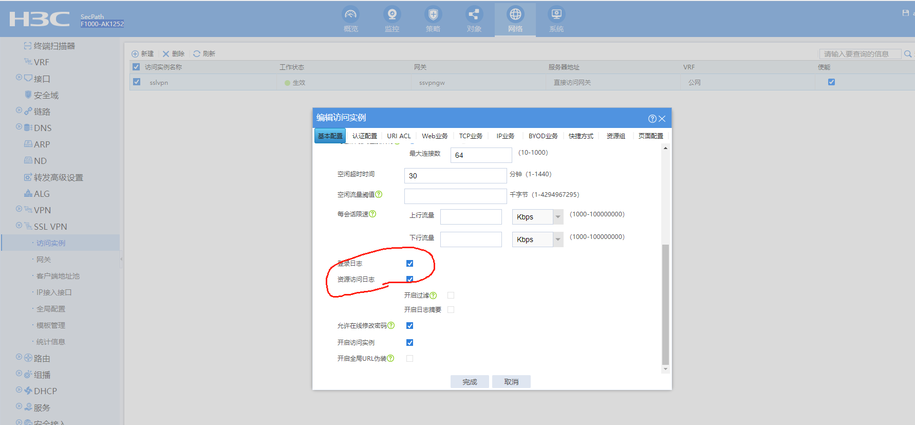 F1000-AK1252 已经勾选登录日志,安全日志里没有显示sslvpn用户接入日志。