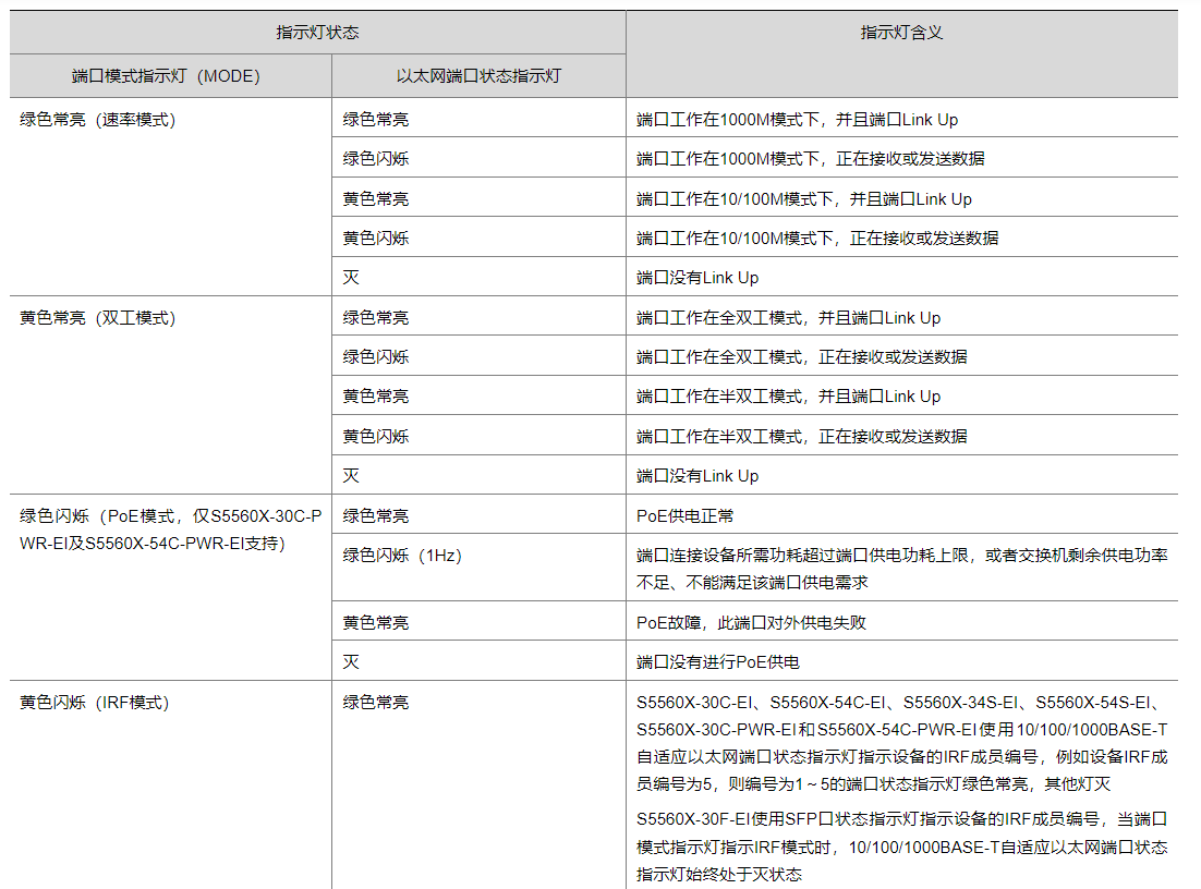 设备的指示灯情况可以在官网的硬件描述手册里查看