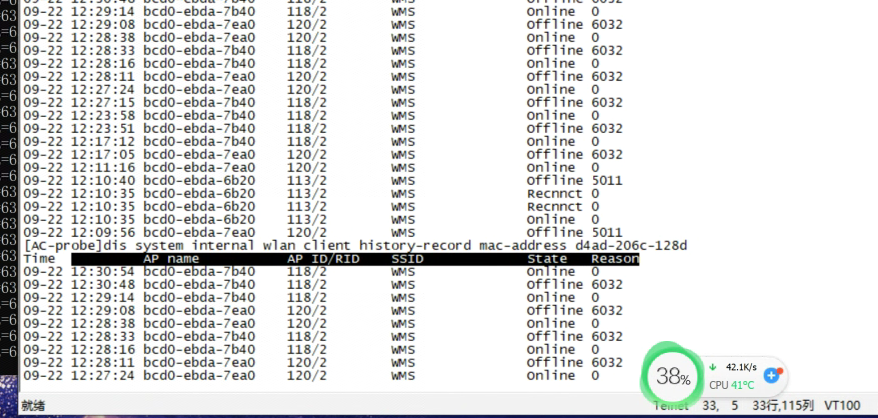 大佬们,终端老是掉线,然后我在AC上查看掉线原因提示 :6032 这个是什么意思呢 ? 怎么能在命令行翻译出来