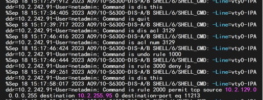 H3C 6300 交换机在vlanif接口下调用ACL 3256 原来的配置rule ID范围在1000内,1000默认拒绝所有。变更内容:undo rule 1000