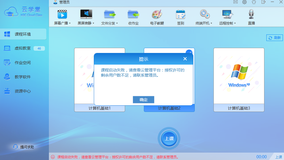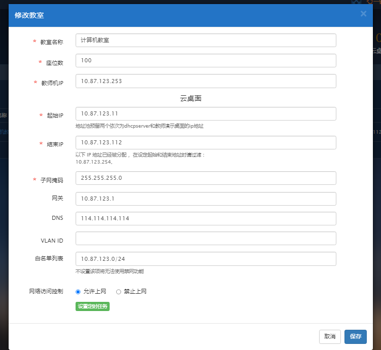 你这个相当于100个虚拟机了。请检查授权是否有100个,没有的话,请在教室里设置减少座位数,减少虚拟机数量,也就是虚拟机IP范围。