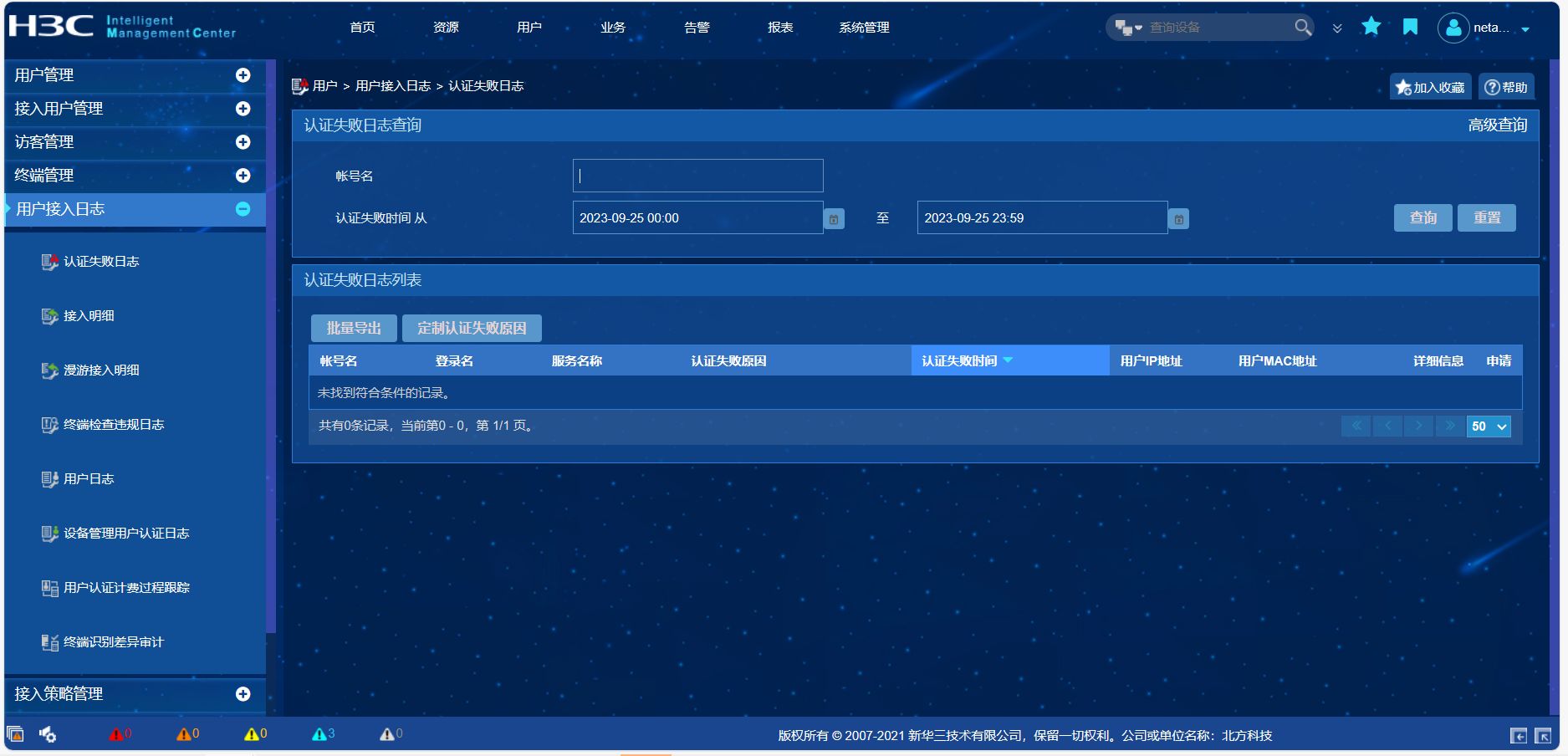 处理建议 | · 检查设备与AAA服务器的网络连接是否正常 · 检查AAA服务器是否正常工作 · 检查用户名和密码设置是否和AAA服务器上的设置一致 · 在认证过程中返回的错误码可能对应多种情况,请逐一排查 |