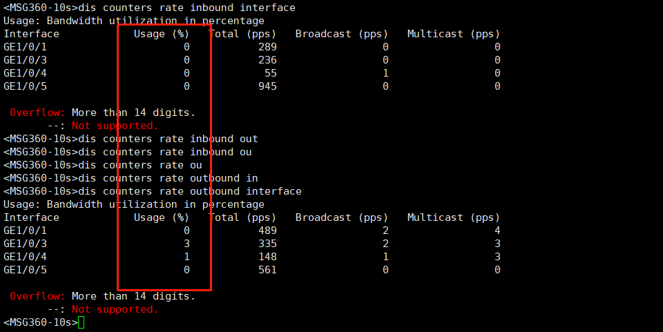 H3C交换机有没有如下类似于华为交换机的dis int brief 回显,可以即时看到端口的流量使用情况