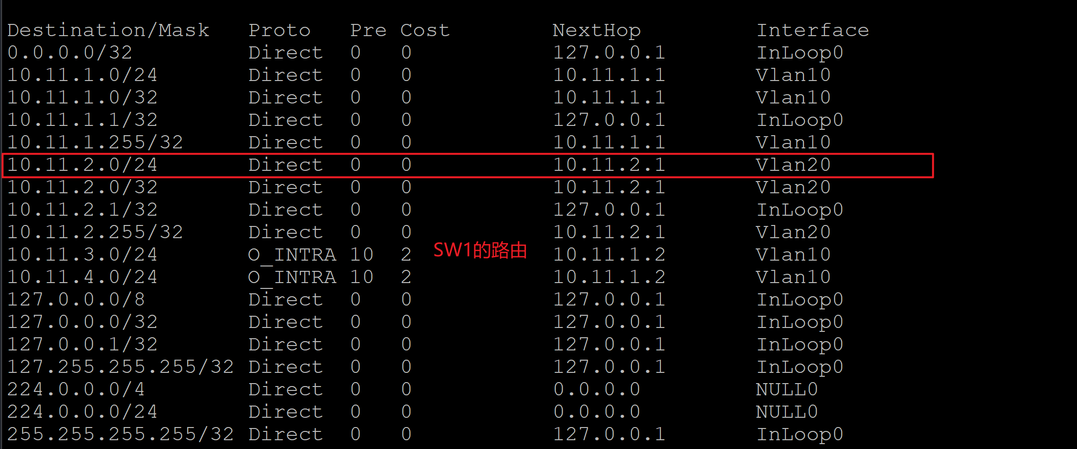 SW1 ping 不通 10.11.2.2