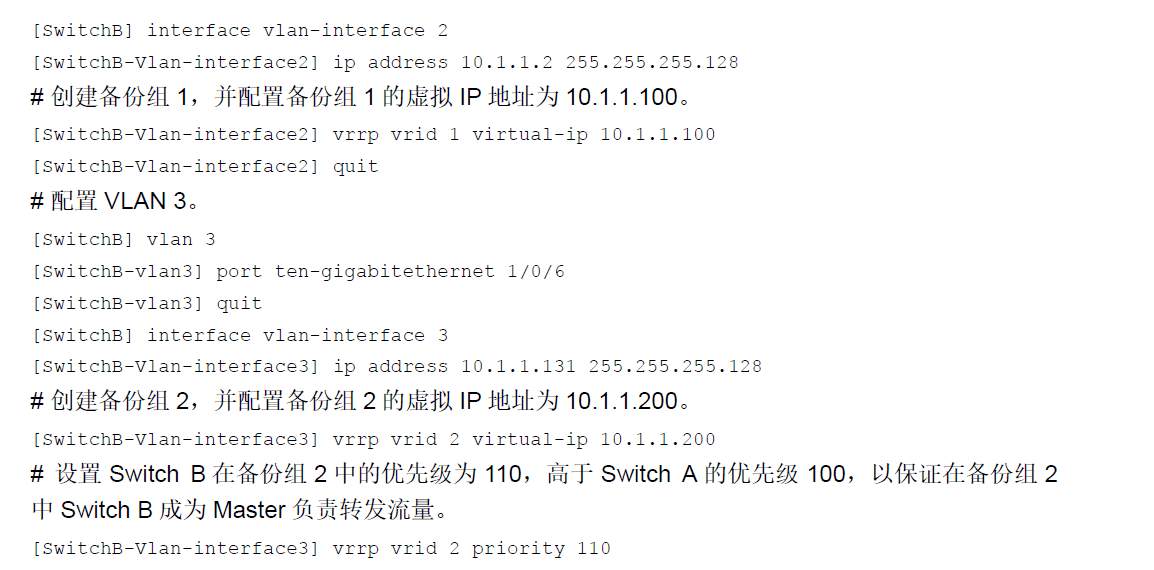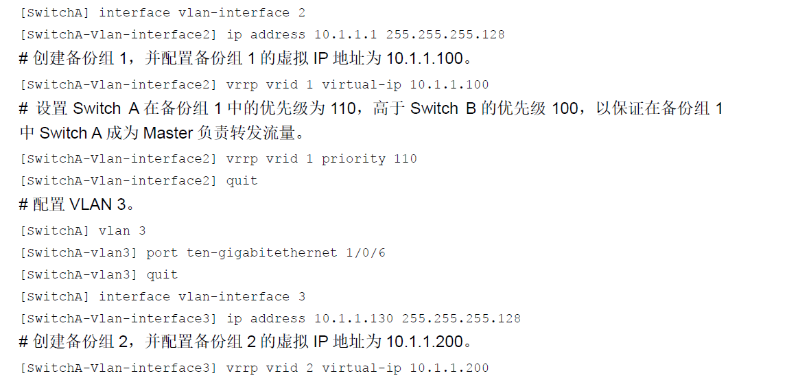 [SW3-Vlan-interface10]vrrp vrid 1 virtual-ip 192.168.1.254