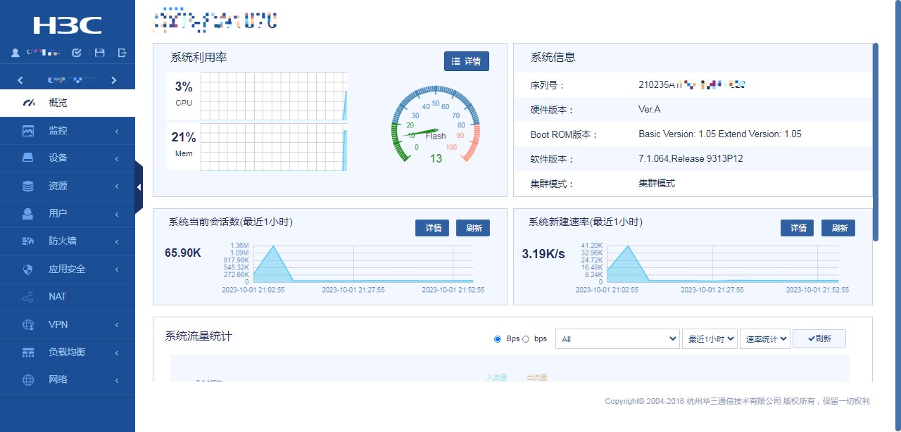 如图公司的 F1070防火墙 软件版本为:7.1.064,Release 9313P12