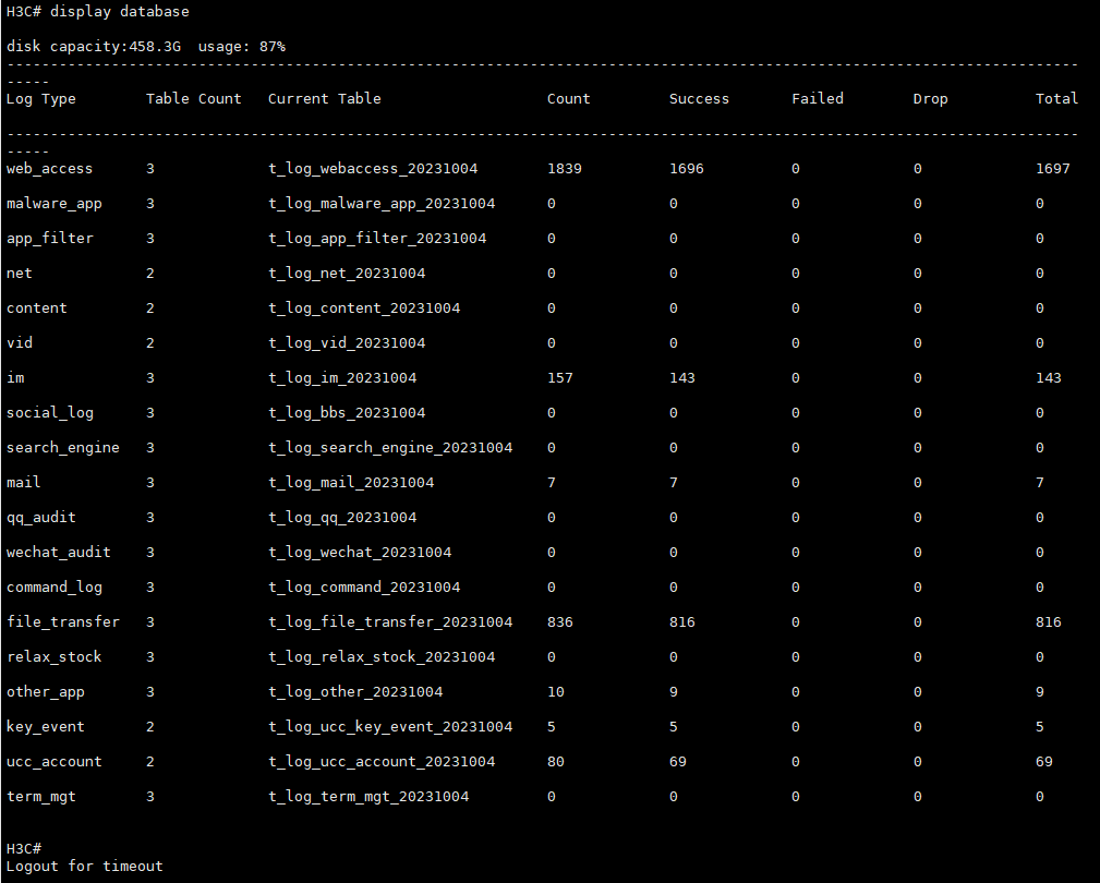 公司用ACG1000上网行为管理 上次清理日志时自动重启。现在通过clear log all clear database两条命令清除所有日志后硬盘空间无法释放。