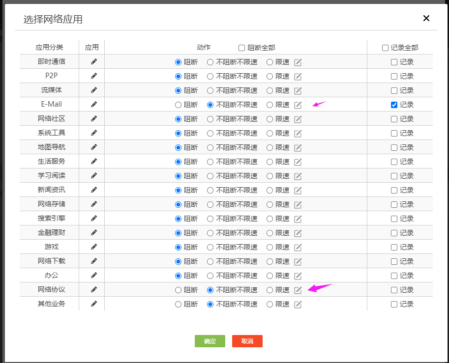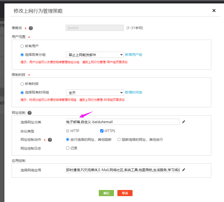 msr860-6hi-xs上网行为里面要设置只允许发邮件是要点允许哪些?