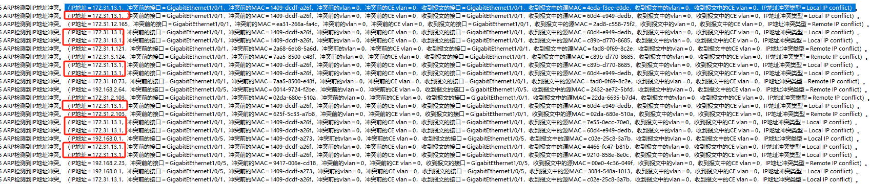 1409-dcdf-a26f为网关mac地址,172.31.13.1是网关ip地址,下面接的是S5720二层空配的交换机,一个套一个到各个岗点办公室的