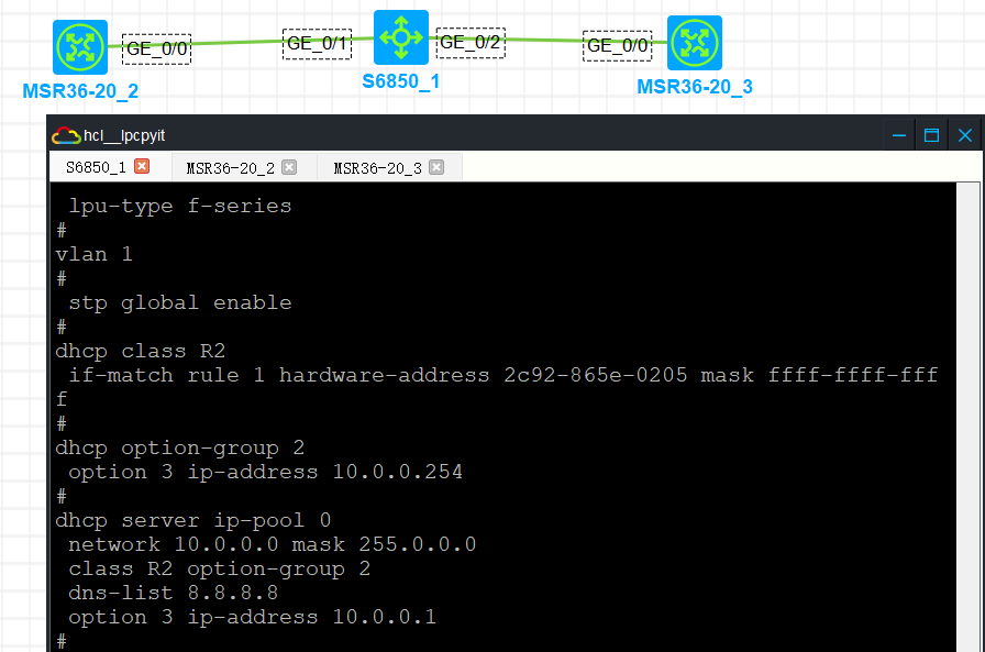 如题,同一个网段中有两个网关,想让mac地址为1111-1111-1111的用户端拿到192.168.1.1的网关,mac地址为2222-2222-2222的用户拿到192.168.1.254的网关,客户说之前用的爱快的设置是支持的,华三的支持吗,我做过以下配置,但是好像没什么效果