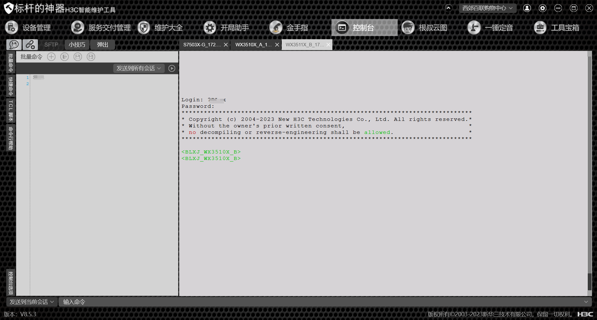 35台设备组网,其中S5130S-EI设备30余台,S7503X-G、WX3510X各两台。网络配置已完成,PC与设备管理IP同网段,现通过标杆神器-设备管理-验证设备连通性,S7503X-G、WX3510X反复验证不通过。通过标杆神器-控制台登录设备正常(输入用户名后自动输入密码可正常登录),PC至设备Ping包测试也正常。但连通性验证不通过,无法执行巡检任务。