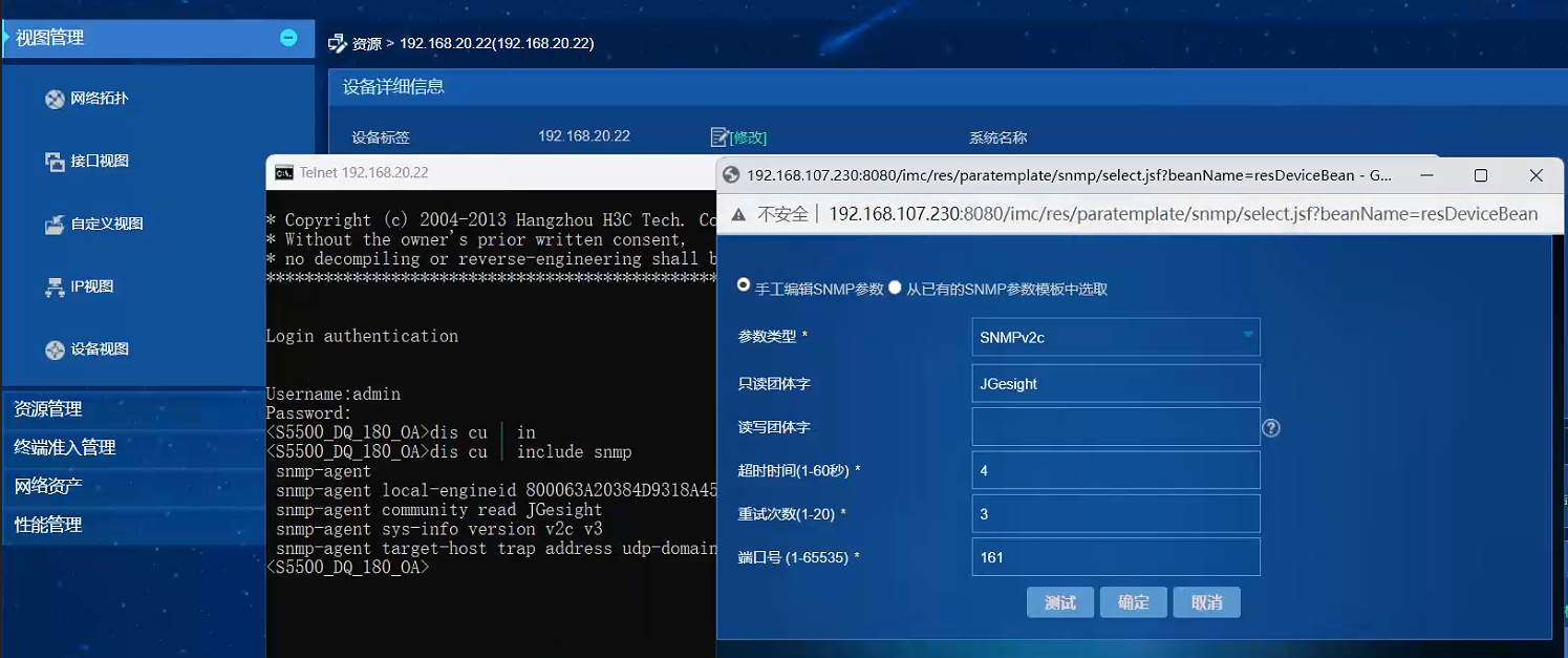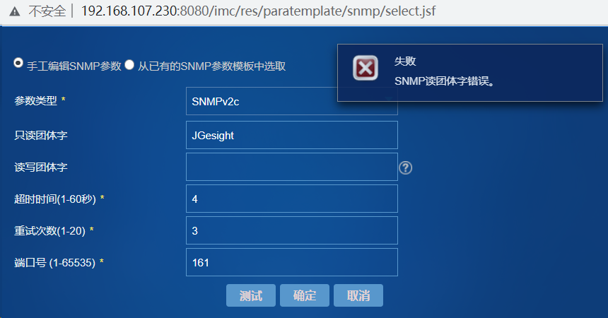 其次IMC和被纳管设备的SNMP版本是否一致。