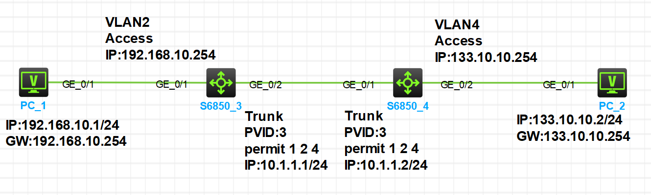 我这个图里dis vlan brief了根本没有VLAN3诶,中间两个Trunk口属于的是VLAN 1 2 4,我刚刚测试下来Trunk口所属的VLAN是根据permit了哪几个VLAN决定的。话说您说的意思是不是两个交换机要互通,可以是二层互通,可以是三层走IP互通,那如果我想走三层的话又回到我说的问题,Trunk口由于同时属于多个VLAN,如果同时配了多个VLAN IF的IP,Trunk口是怎么决定要用哪个IP的呢?谢谢