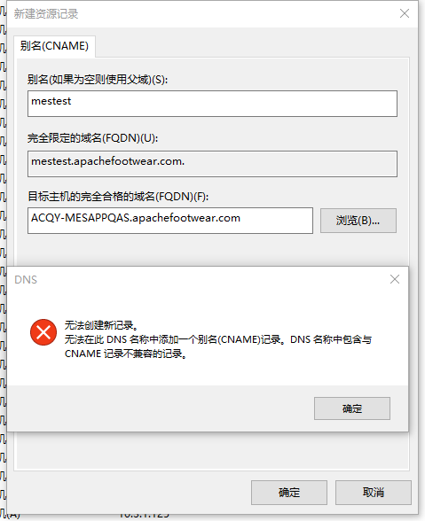 在dns服务器创建别名时出现以下提示