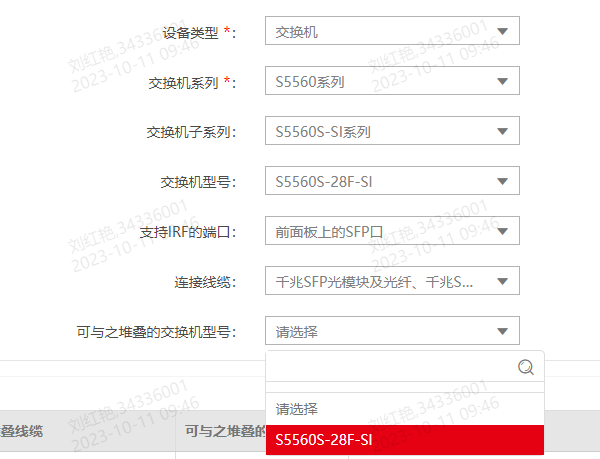 S5560S-28F-SI 与S5560S-28P-SI 之间能做堆叠吗,同一个系列的交换机 ,工具上选择不了S556S-28P-SI