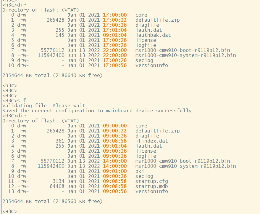 这是保存成功了,startup.cfg是启动文件