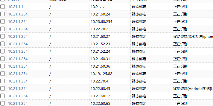 我先说下我的基本架构,20段的8段是有线、52段是无线,都是在核心下面同一栋楼,另外10.21和10.22段是另外一栋楼,通过光纤跳线连接到核心上的,同一栋楼10.20.8段的获取到的ip和mac是对的,但是不弹出认证,10.21和22段的获取到的mac都是核心交换机的