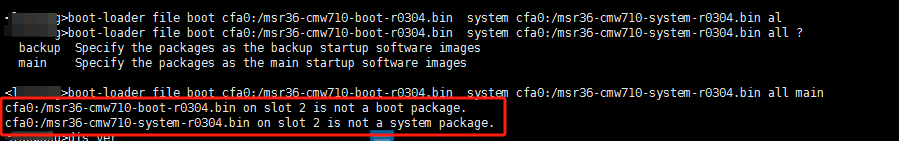 提示 msr36-cmw710-boot-r0304.bin 不是一个启动包 系统包提示这个错误