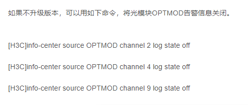 系统视图模式下,执行命令“info-center source OPTMOD console level error”或执行命令“info-center source OPTMOD console deny”