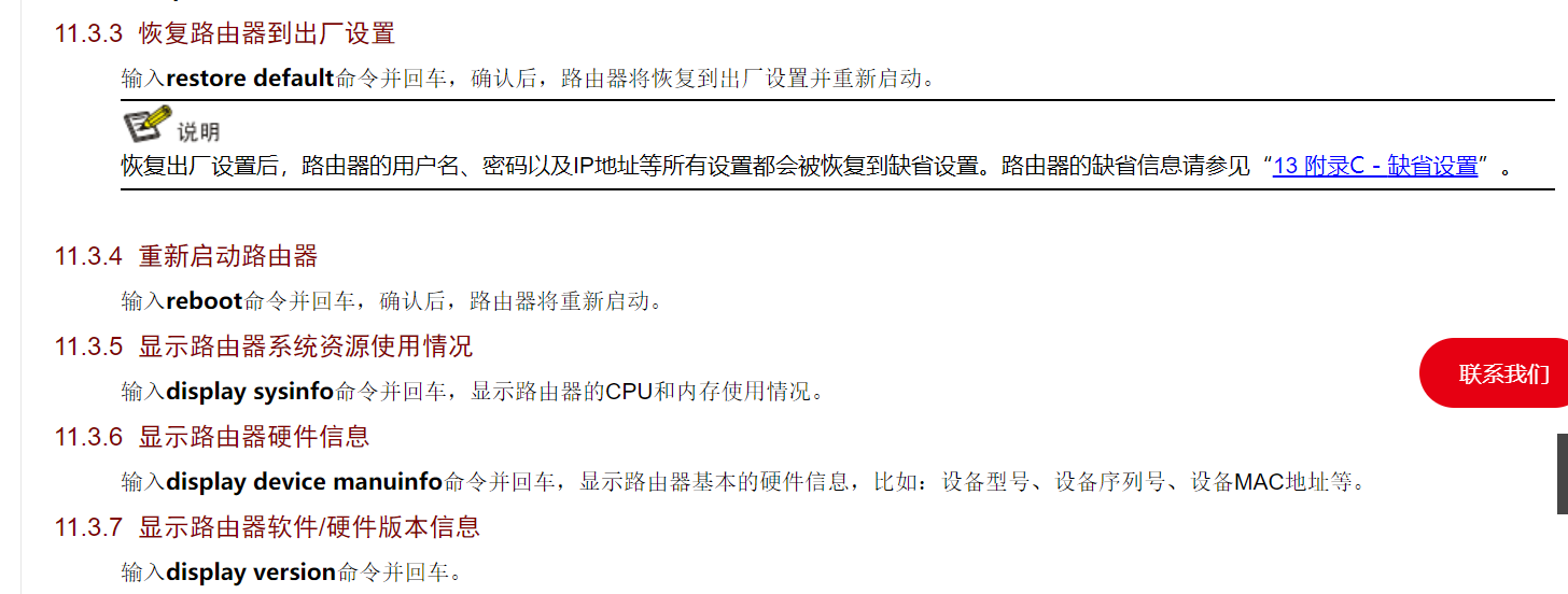 输入restore default命令并回车,确认后,路由器将恢复到出厂设置并重新启动。