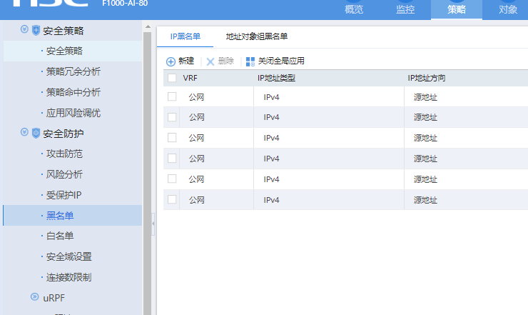 H3C防火墙黑名单是一种安全功能,可以过滤来自指定IP地址的所有报文。您可以通过以下步骤配置黑名单: