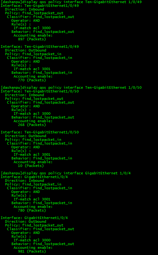 目前交换机可以看做一台二层设备,从上联XGE1/0/49 XGE1/0/50(两个端口做的静态聚合)然后转发到GE1/0/4下面的某一台设备上,会出现从上联 XGE1/0/49 XGE1/0/50 in收到的数据包从 GE1/0/4 口out的不一致,端口流量很小,不到50%