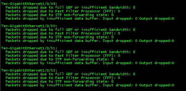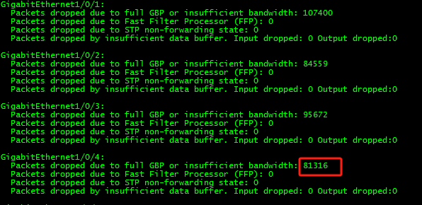 查看packet-drop 可以看到数据进来的端口都没有丢包,就是发送出去的端口有数据包被drop掉;
