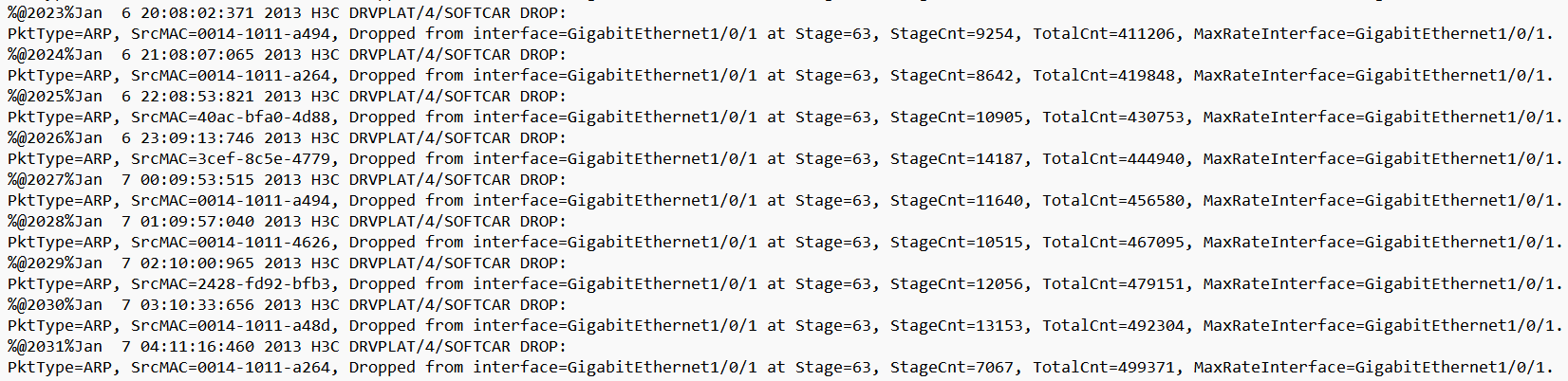 日志提醒的arp超限,但是arp超限只会丢弃arp报文,不会丢弃dhcp报文,所以不会是引起无法获取ip的问题